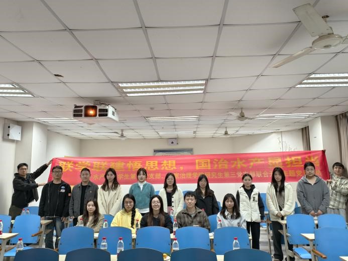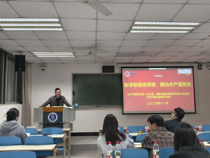 为推动党支部建设与跨学科交流深度融合,2025年11月13日晚,水产学院学生第一党支部与国家治理学院研究生第三党支部于32教202室联合开展“联学联建悟思想,国治水产显担当”主题党日活动。