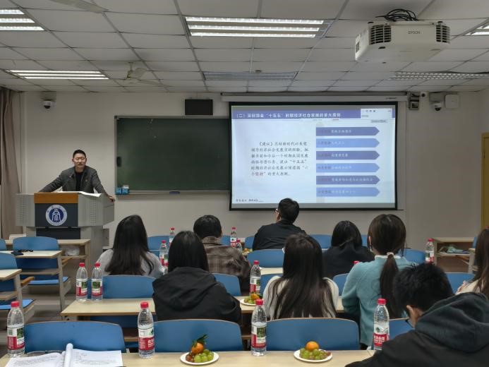国家治理学院汪全洲老师结合“十五五”时期经济社会发展必须遵循的原则,围绕“坚持有效市场和有为政府相结合”的深刻内涵讲述微党课,教育引导研究生党员要把专业学习与社会服务深度融合。