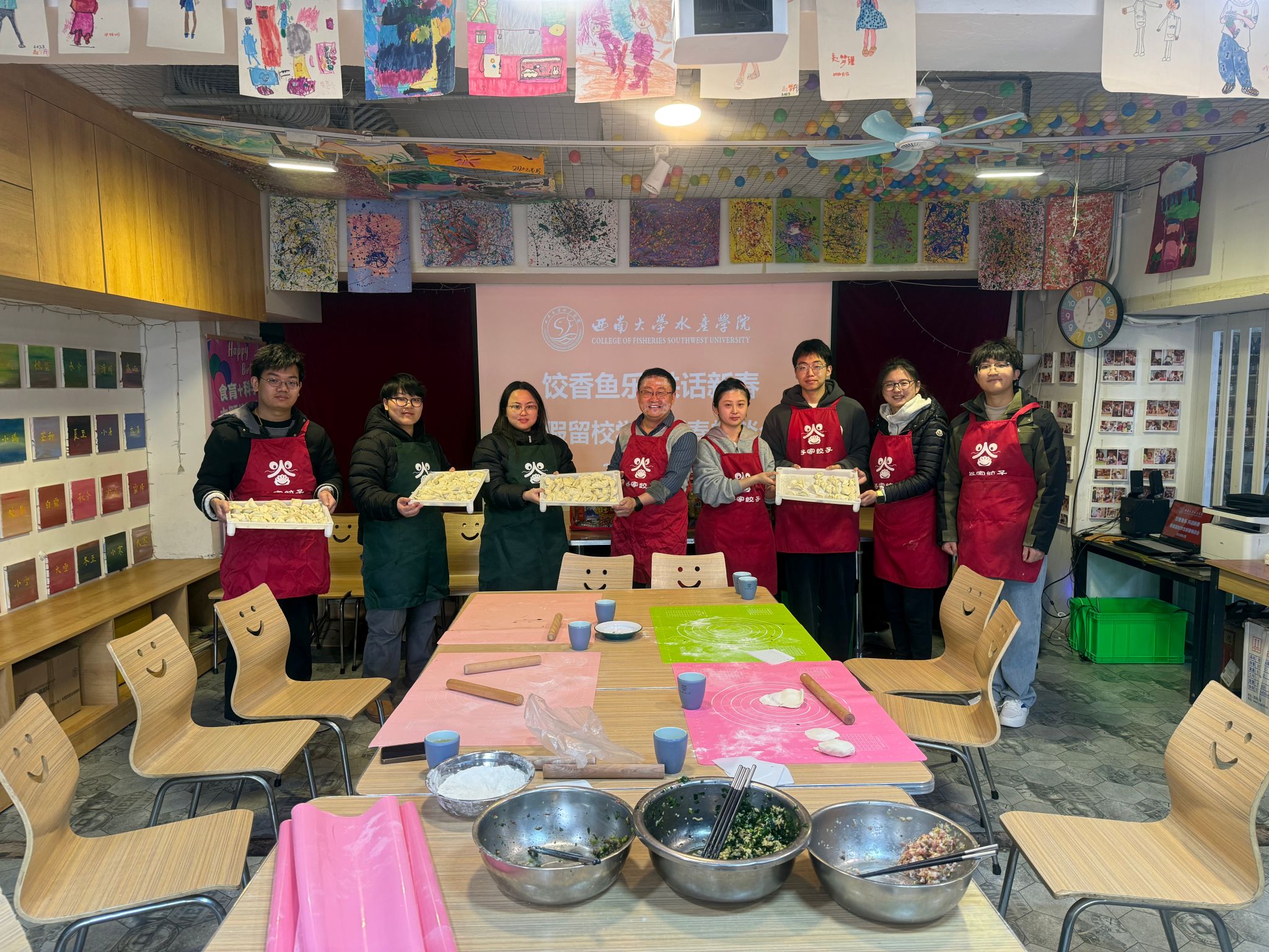 腊月廿六,年味已浓。2月13日上午10时30分,学院开展春节留校学生慰问活动。学院院长刘海平,党委副书记刘一丹与6名留校过春节的学生共聚一堂,以“饺香鱼乐,共话新春”为主题喜迎新春,在欢声笑语中传递学院关怀。