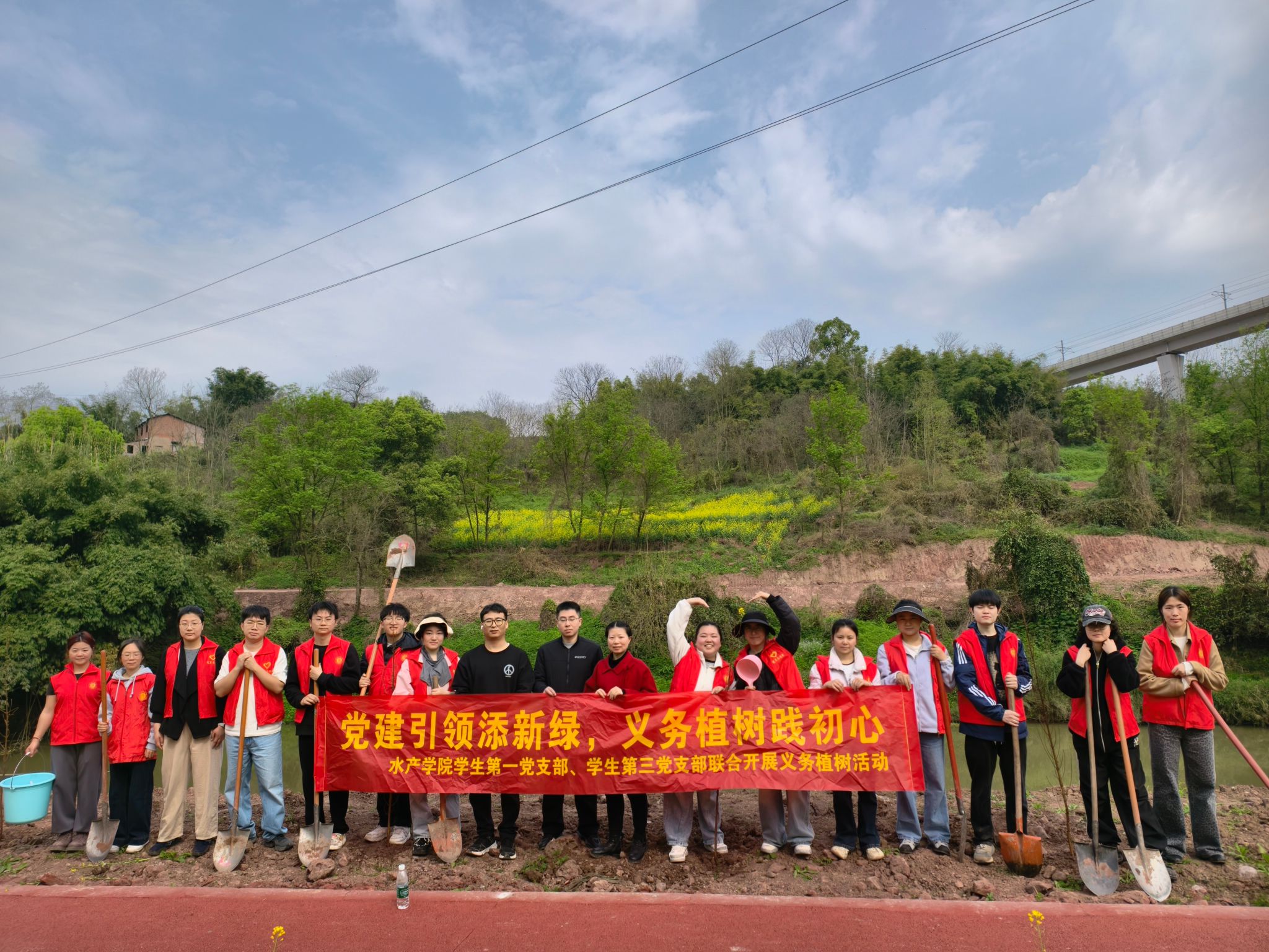 春风拂枝催新绿,植树造林正当时。为深入践行“绿水青山就是金山银山”的生态理念,积极响应绿色发展号召,加强劳动教育,3月12日,学院学生第一党支部、学生第三党支部在党支部书记尹斌老师的带领下赴北碚区长滩村联合开展“党建引领添新绿,义务植树践初心”主题志愿服务活动。